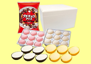 ミニサイズの雪見だいふくや1口タイプのプチチョコアイスなど業務用アイスの詰め合わせです。そのまま召し上がっても、いろいろな盛り付けをしていただいたりと、ご家族みなさんで楽しんでください。
