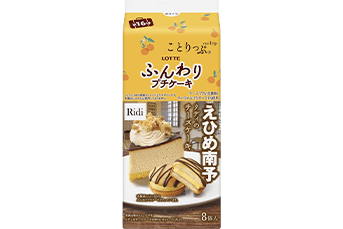 <リディのチーズケーキ>「ことりっぷ」とコラボしたふんわりプチケーキ。愛媛県大洲市にある人気カフェ「Ridi」の「チーズケーキ」の味わいを表現しました。2つのチーズ原料を使ったクリームを、ビターキャラメルパウダーとチーズパウダーを練り込んだ生地でサンドし、チーズと優しいキャラメルの味わいをバランスよく楽しめるように仕立てました。