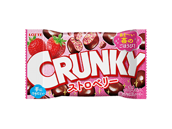 <ストロベリー>クランキーの最大のこだわりであるサクサク食感のモルトパフを、フルーティーな苺をイメージしたチョコレートにギッシリ配合しました。手につきにくい、一口サイズのチョコレートなので、パソコン等のデスクワークの合間や外出の際にピッタリの商品です。