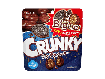 <ザクザククッキー>やみつきなおいしさのクランキービッグパウチザクザククッキーは、ビッグサイズのクランキーにほろ苦いブラックハードクッキーを練りこみ、ザクザクの食感を表現。ほんのり塩を加えてやみつきな味わいに仕立てました。
