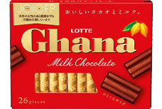 なめらかな口どけとミルク感の効いたコクのある味わいが特徴のガーナミルクチョコレート。食べやすいひと口サイズに個包装された26枚のガーナミルクを箱にぎっしり詰め込みました。