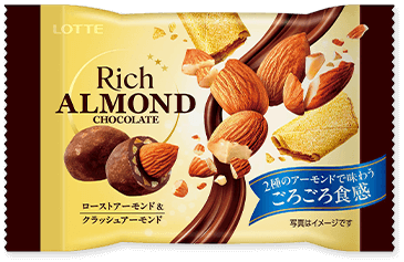 こだわりの2層仕立てによるクセになるおいしさ!ほろ苦い味わいのビターチョコと甘みのあるミルク味のチョコで、厳選したローストアーモンドを丁寧に包みました。