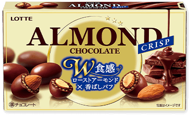 <クリスプ>ローストアーモンドと香ばしパフのW食感!サクサク食感のモルトパフ、カリッとしたアーモンド、甘みのあるミルク味のチョコレートが相性ピッタリの商品です。