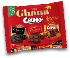 なめらかな口どけのガーナとサクサクのクランキーが一度に楽しめる、3種アソートのシェアパックです。気分や好みによって食べ分けられるように、ひと口サイズのガーナミルク、ガーナブラック、クランキーが個包装に入っています。