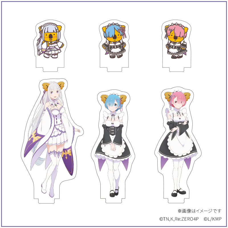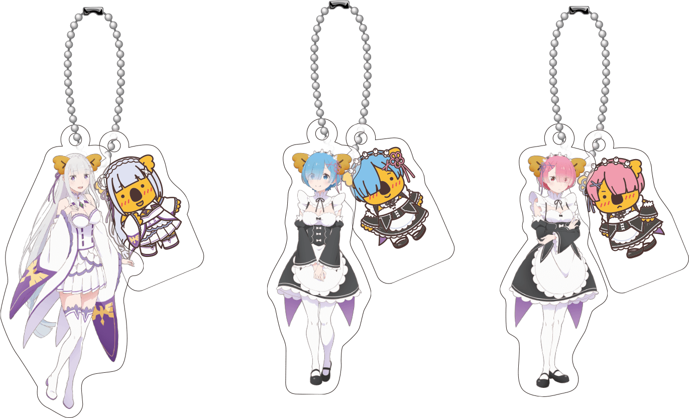 リゼロキャラデザインH70×50mm コアラデザインW50×50mm、 透明アクリル3mm厚、片面印刷