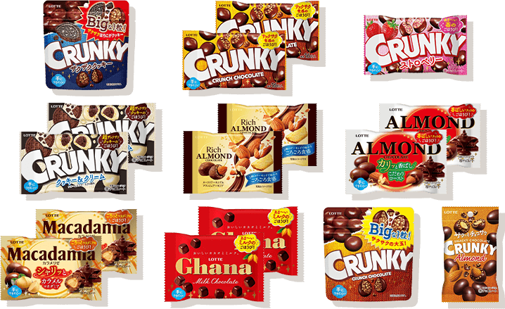 食べやすい一口サイズのサクサク食感クランキー。クランキーの最大のこだわりであるサクサク食感のモルトパフを、まろやかなミルクチョコレートにギッシリ配合しました。