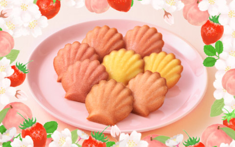 季節限定の味わいをアソートした「春のマドレーヌ」、お花と葉っぱモチーフのケーキをアソートした「さくらと抹茶のケーキ」。