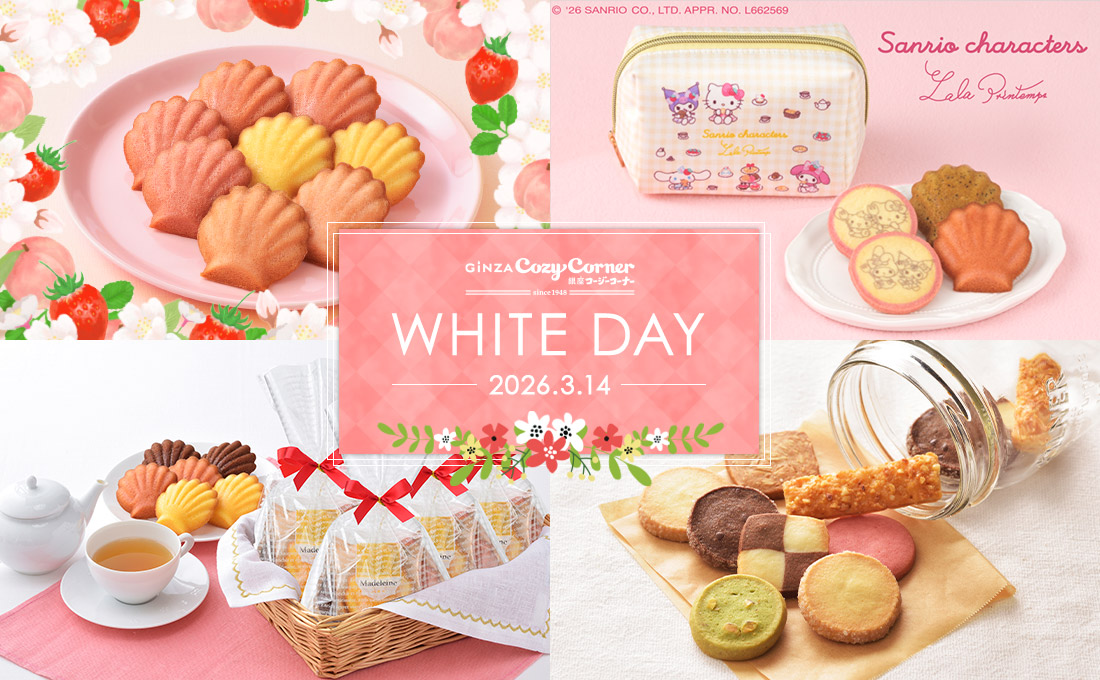 をコンセプトに、銀座コージーコーナー限定デザインの缶やポーチなどに焼菓子をアソート。
