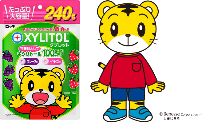 キシリトールが甘味料中100%配合されているタブレットで、子供に人気のグレープ味とイチゴ味の2種類の味が楽しめます。