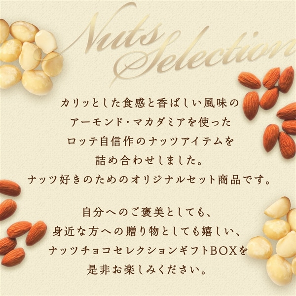 砂糖(国内製造)、ローストマカダミアナッツ、全粉乳、カカオマス、植物油脂、ココアバター、乳糖、クリーム加工品/乳化剤、香料、(一部に乳成分・アーモンド・大豆を含む)