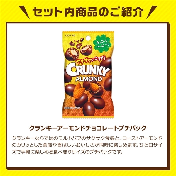 ローストアーモンド(国内製造)、砂糖、全粉乳、カカオマス、モルトパフ(小麦粉、でん粉、モルトエキス、食塩)、植物油脂、ココアバター、乳糖、水あめ、食塩/乳化剤(大豆由来)、光沢剤、増粘剤(アラビアガム)、香料、膨脹剤、カラメル色素