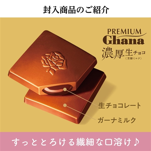 砂糖(国内製造)、全粉乳、カカオマス、植物油脂、クリーム、ココアバター、洋酒、バターオイル、食塩/ソルビトール、酒精、乳化剤(大豆由来)、香料