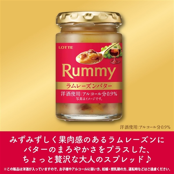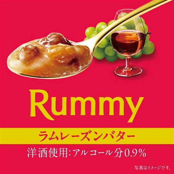 レーズン(ぶどう(オーストラリア)、植物油脂)、砂糖、バター、ラム酒/増粘多糖類、香料、乳化剤、酸化防止剤(V.E)、(一部に乳成分を含む)