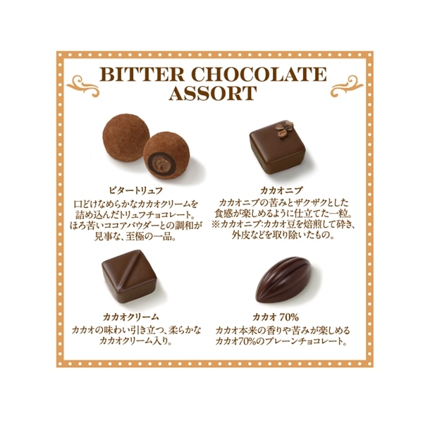 チョコレート(砂糖、カカオマス、ココアバター、植物油脂、その他)(国内製造)、カカオマス、還元水あめ、植物油脂、加糖脱脂れん乳、ココアパウダー、カカオニブ加工品、クッキークランチ、ショートニング、カカオニブ/乳化剤、香料、膨脹剤、(一部に小麦・乳成分・大豆を含む)
