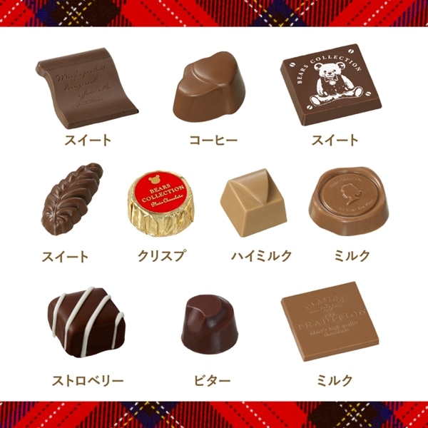 チョコレート(砂糖、カカオマス、ココアバター、全粉乳、植物油脂、その他)(国内製造)、カカオマス、植物油脂、モルトパフ、コーヒー/乳化剤、香料、酸味料、着色料(ビートレッド、酸化チタン)、膨脹剤、(一部に小麦・乳成分・大豆を含む)