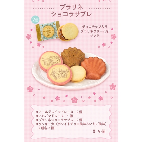 【プラリネショコラサブレ】小麦粉(国内製造)、アーモンドプラリネ、砂糖、マーガリン、バター、チョコレート、ショートニング、液卵、アーモンドパウダー、ココアバター、洋酒、食塩/香料、乳化剤(大豆由来)