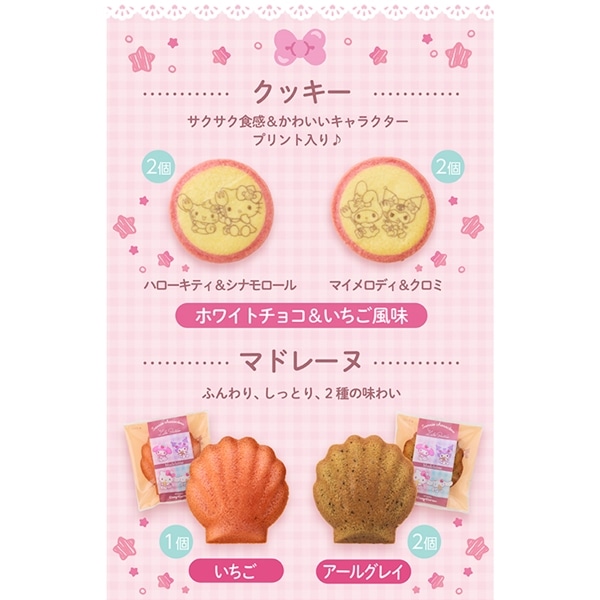 【クッキー】小麦粉(国内製造)、マーガリン、砂糖、液卵、脱脂粉乳、アーモンドパウダー、チョコレート、苺ペースト、食塩/乳化剤(大豆由来)、香料、酸味料、着色料(クチナシ、紅花黄、ラック、カロチン)