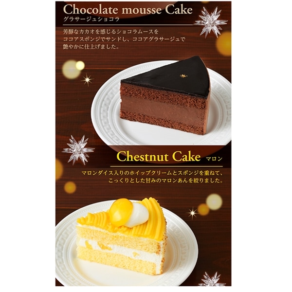 【グラサージュショコラ】乳等を主要原料とする食品(国内製造)、チョコレート、液卵、砂糖、牛乳、小麦粉、クリーム、還元水飴、ココアパウダー、液糖、水飴、加工油脂、植物油脂、洋酒、ゼラチン、加糖練乳、転化糖、バター、でん粉、カカオマス/乳化剤、セルロース、調味料(無機塩)、香料、膨張剤、糊料(加工デンプン、増粘多糖類)、着色料(金箔、カロチン)、(一部に小麦・卵・乳成分・大豆・ゼラチンを含む)